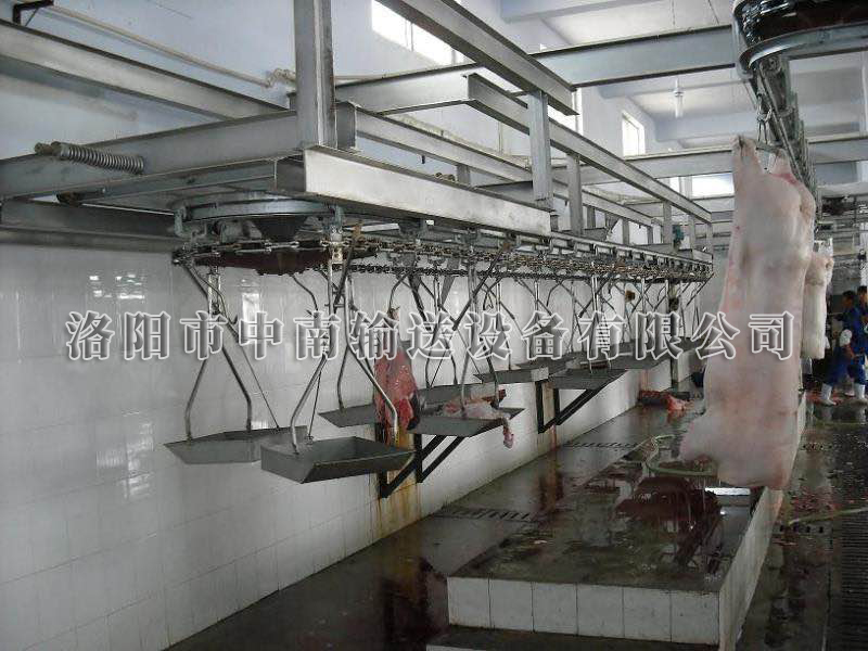 本檢驗(yàn)線又稱衛(wèi)生檢驗(yàn)線。解剖的副產(chǎn)品裝在相對應(yīng)的檢驗(yàn)盤內(nèi),通過胴體加工輸送線與該同步檢驗(yàn)線的同步運(yùn)行,以達(dá)到同步衛(wèi)生檢驗(yàn)的目的。