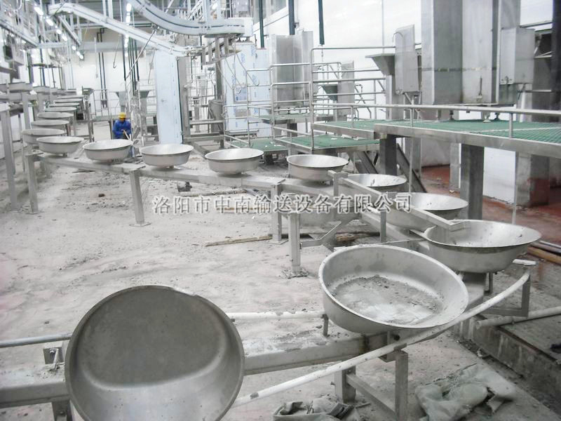 同步衛(wèi)檢線可分為:落地式和懸掛式。將屠體的頭、腸、胃、心、肝與胴體同步對好檢驗,紅臟與白臟懸掛在衛(wèi)檢線上,按設(shè)定的速度與胴體加工線同步運(yùn)行,由人工對內(nèi)臟進(jìn)行充分檢驗檢疫,這樣既保證了肉質(zhì)的衛(wèi)生質(zhì)量,又符合國家有關(guān)衛(wèi)生檢測標(biāo)準(zhǔn)。該設(shè)備運(yùn)行平穩(wěn),同步準(zhǔn)確,是屠宰加工中不可缺少的裝置之一。